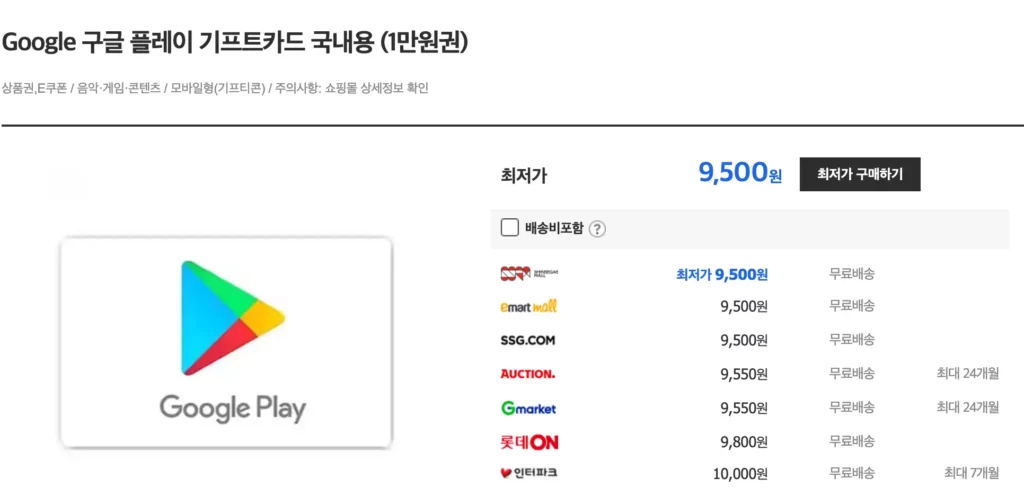 2. 구글 플레이 기프트카드 싸게 구매하기